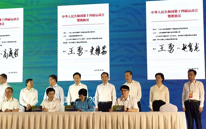 金陵體育作為全國第十四屆運動會的贊助企業(yè)和供應(yīng)商,受邀參加本次簽約儀式。