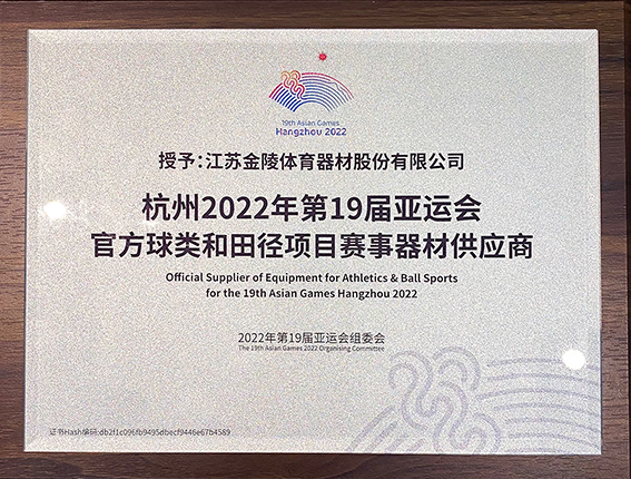 金陵體育被授予杭州2022年第19屆亞運(yùn)會官方球類和田徑項(xiàng)目賽事器材供應(yīng)商
